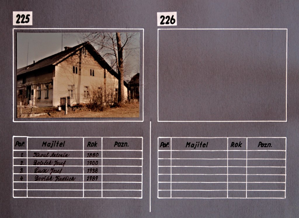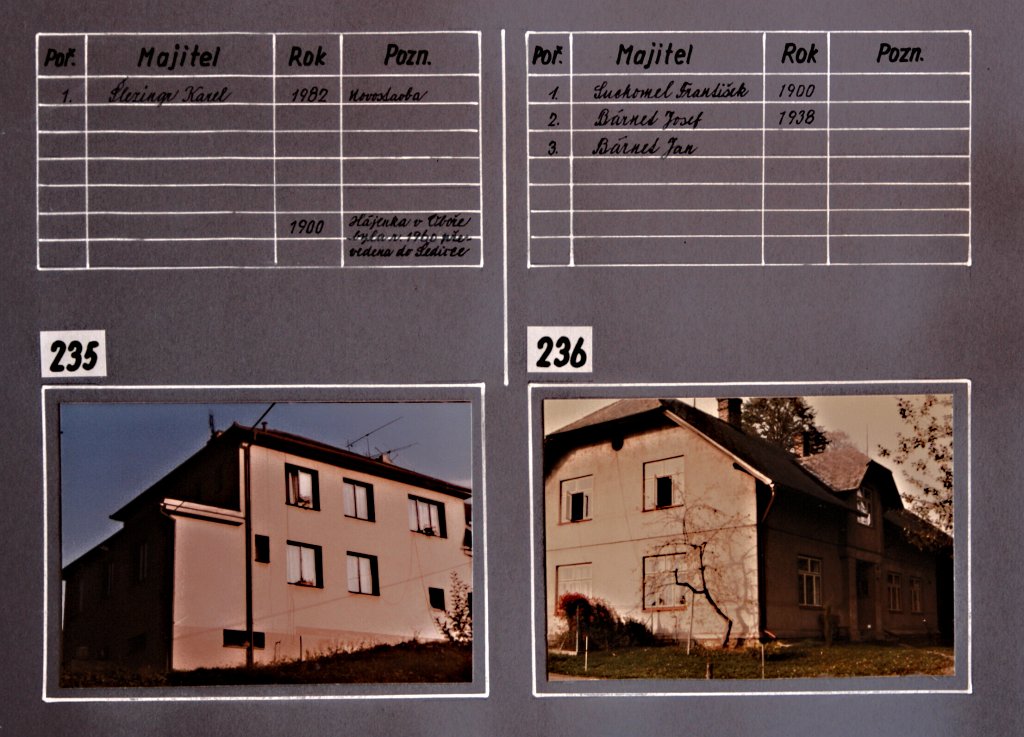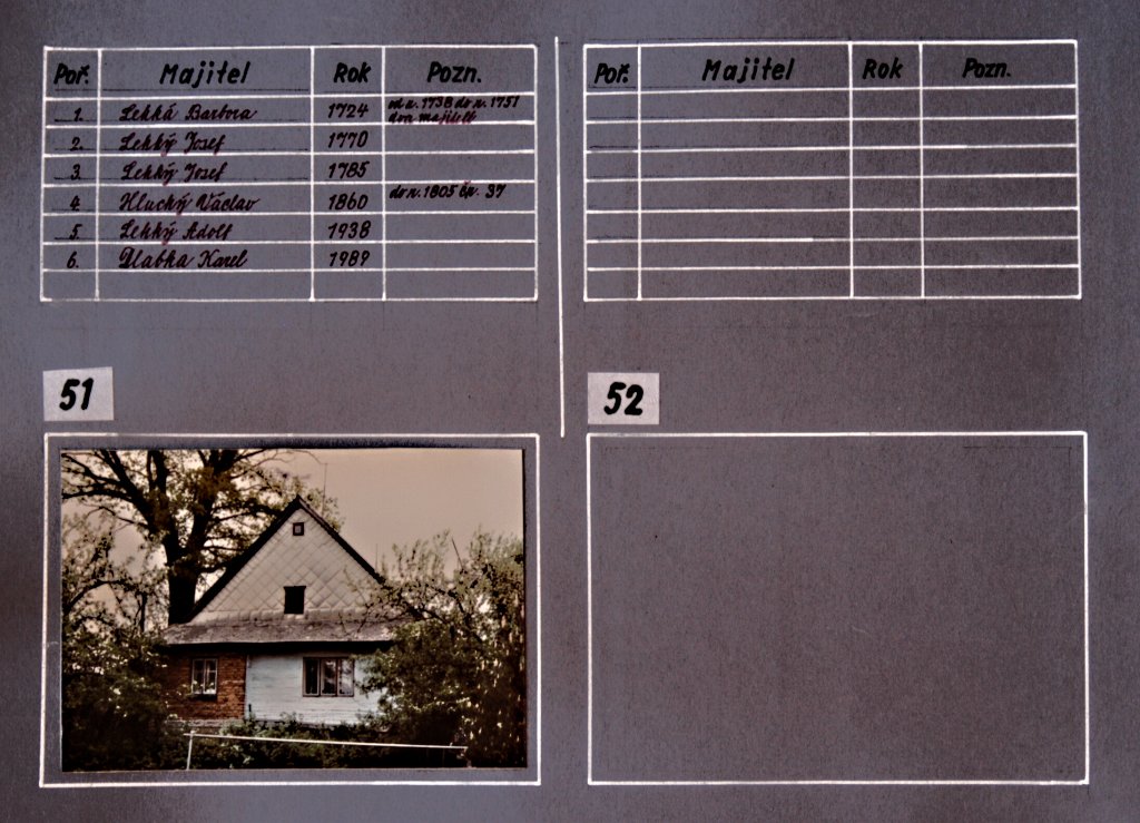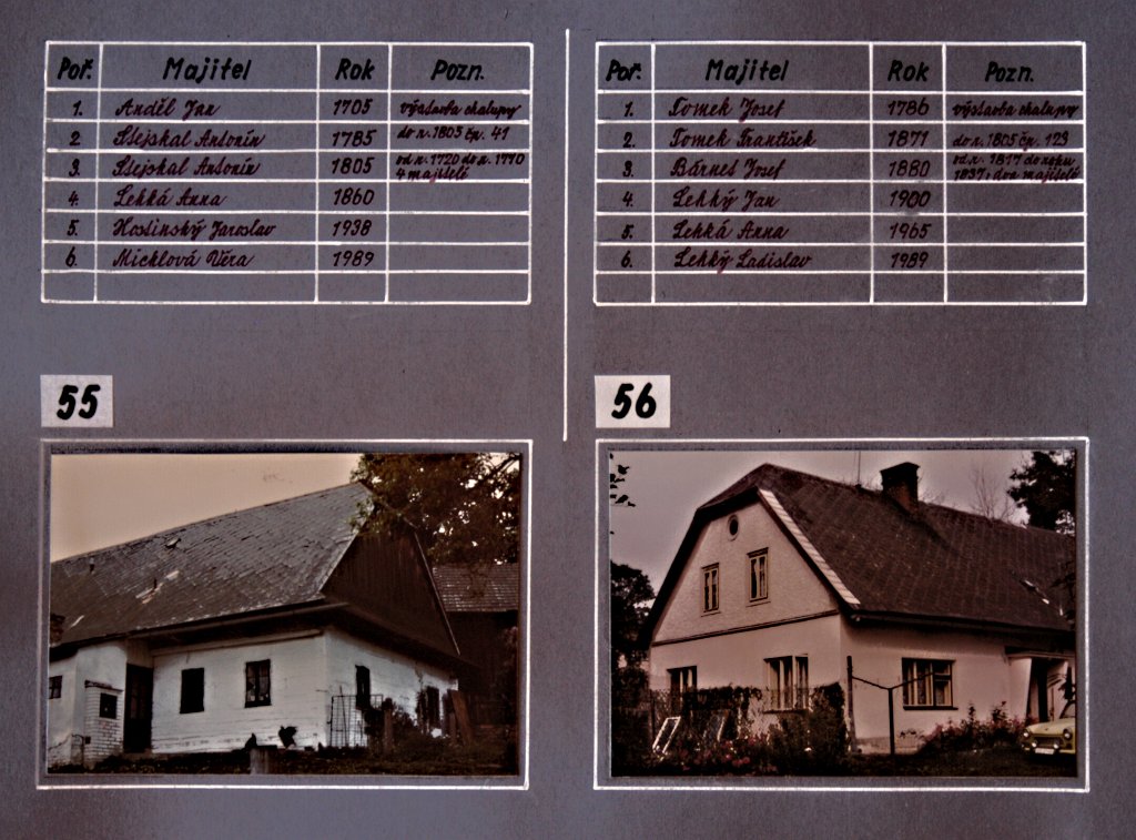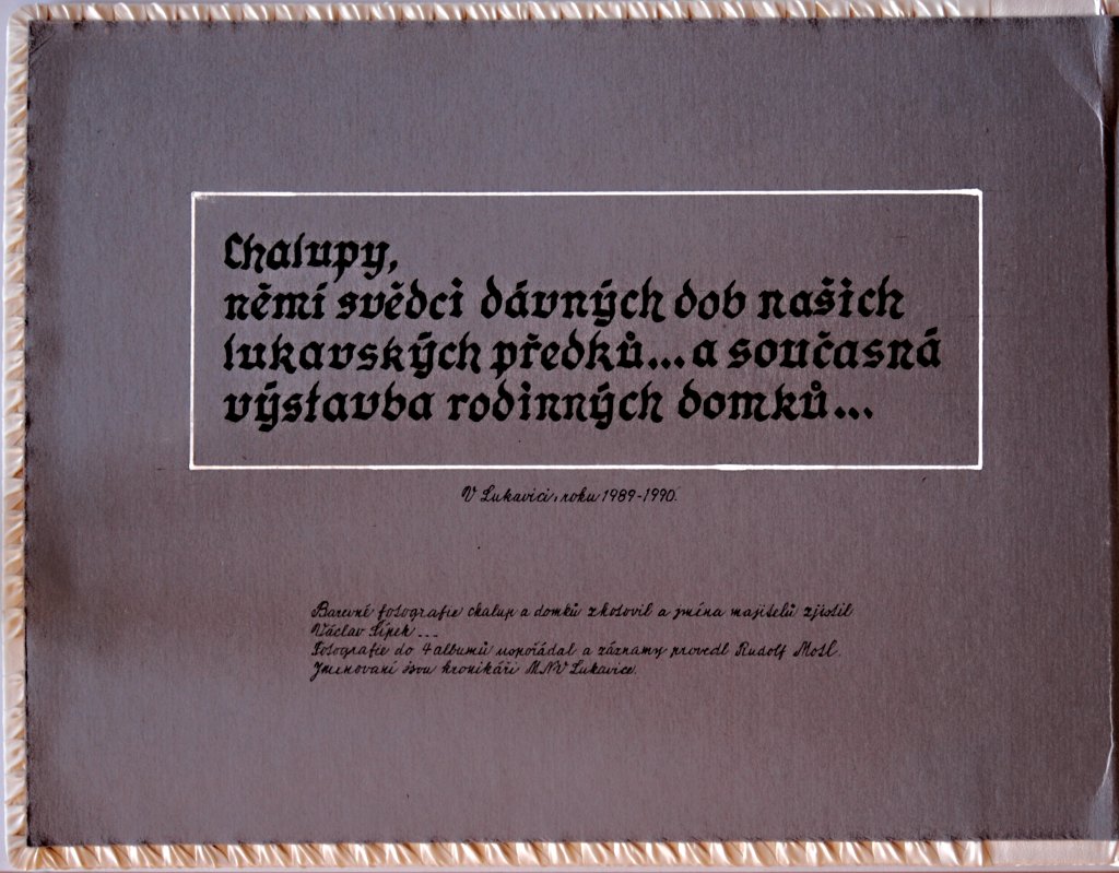 Chalupy, němí svědci dávných dob našich lukavských předků… a současná výstavba rodinných domků. Tato část fotogalerie je věnována kartotéce čísel popisných domů v Lukavici a jejich majitelům v průběhu historie. Fotografie jednotlivých chalup a rodinných domků doplňují údaje, které přibližují proměny zástavby obce i osudy rodin spojených s jednotlivými domy.