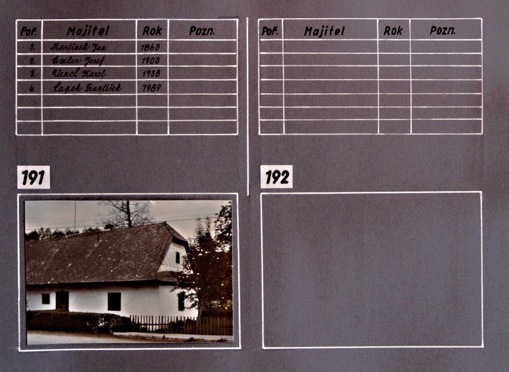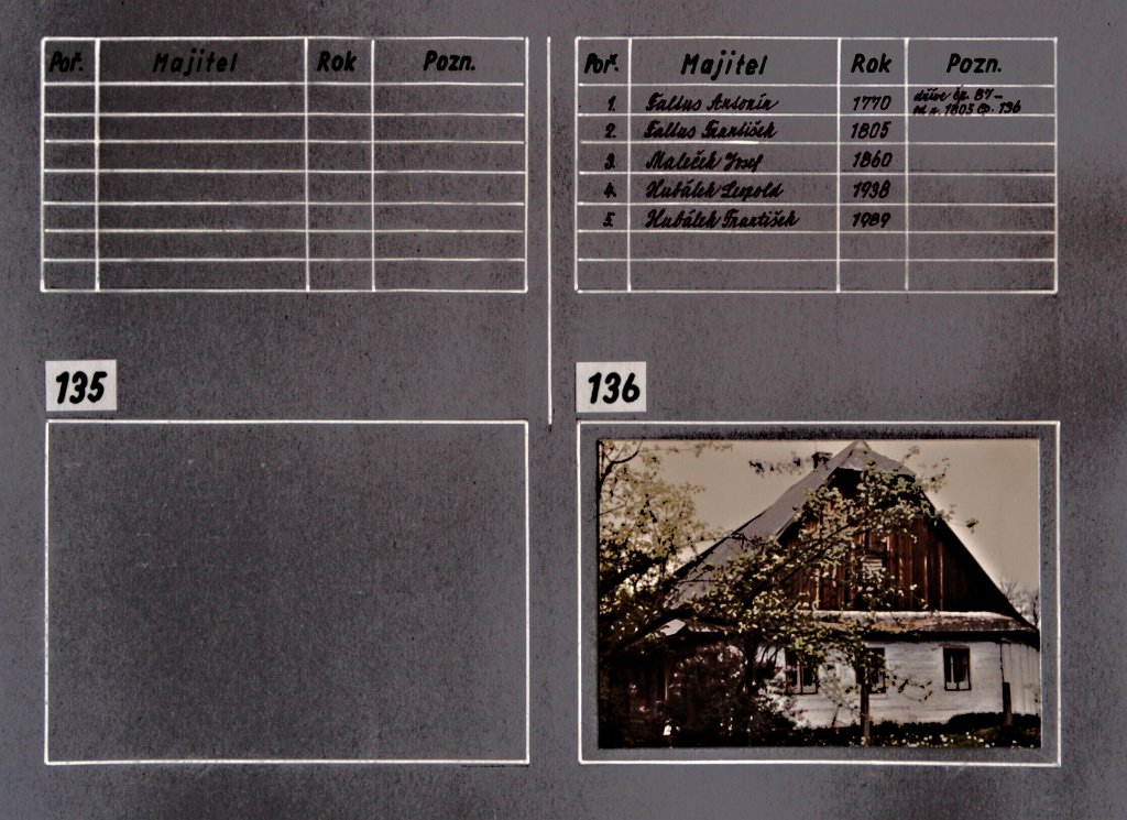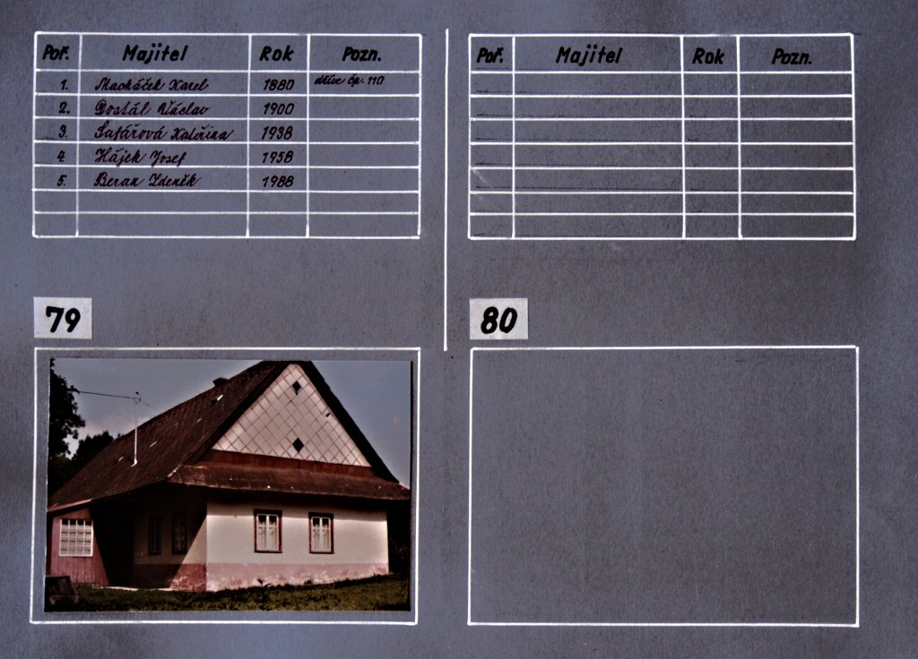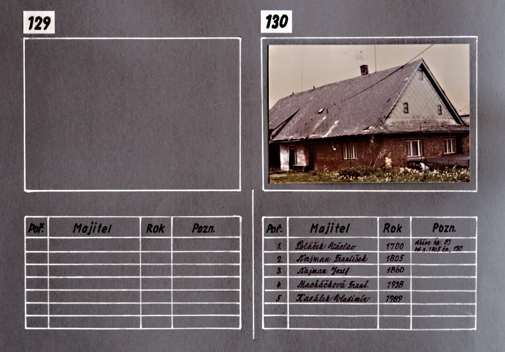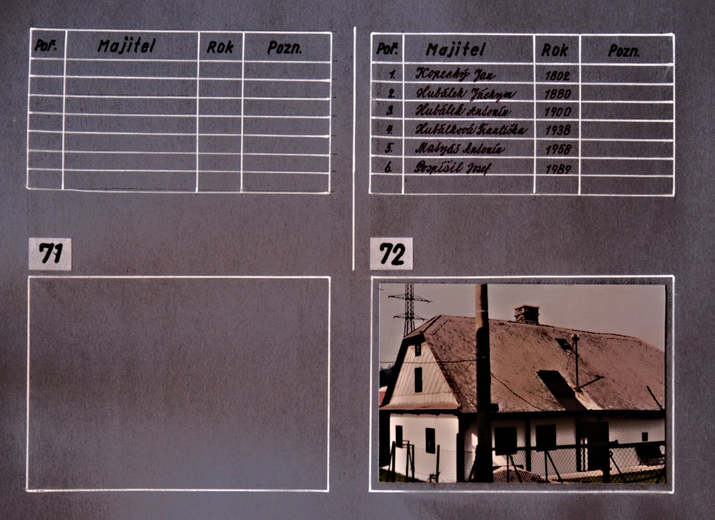 Chalupy, němí svědci dávných dob našich lukavských předků… a současná výstavba rodinných domků. Tato část fotogalerie je věnována kartotéce čísel popisných domů v Lukavici a jejich majitelům v průběhu historie. Fotografie jednotlivých chalup a rodinných domků doplňují údaje, které přibližují proměny zástavby obce i osudy rodin spojených s jednotlivými domy.